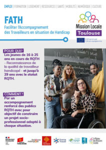 Le projet FATH accompagne les jeunes de 16 à 25 ans, en cours de RQTH – Reconnaissance de la qualité de travailleur handicapé – et jusqu’à 29 ans avec le statut RQTH, grâce à une équipe dédiée de conseillers.