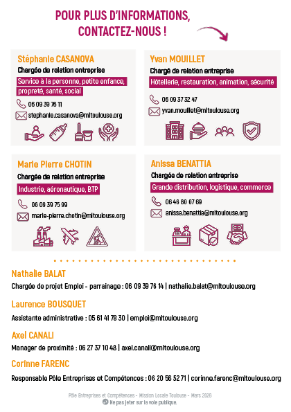 L’entreprise est au cœur de notre projet, la Mission Locale s’engage à vos côtés, vous accompagne et vous conseille au quotidien grâce à l’expertise de nos chargés de relations entreprises !